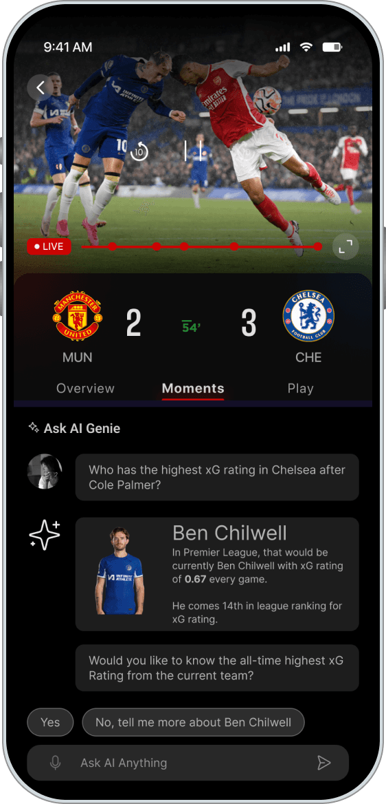 Users navigate a fragmented landscape, often juggling multiple apps and platforms to view live matches, access sports data, and be engaged.